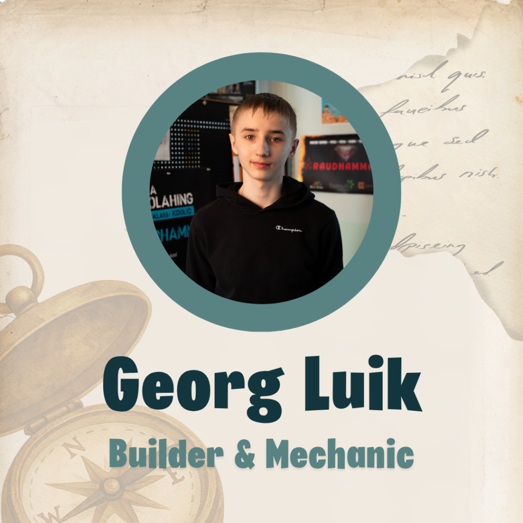 I study in the 7th grade at Võru Kreutzwald School and I am 14 years old. In my free time, I engage in computer games, robotics, and agriculture. I have been involved in robotics for three years, and this school year I joined the Nuti-Võlur team for the first time to further develop my knowledge and skills.