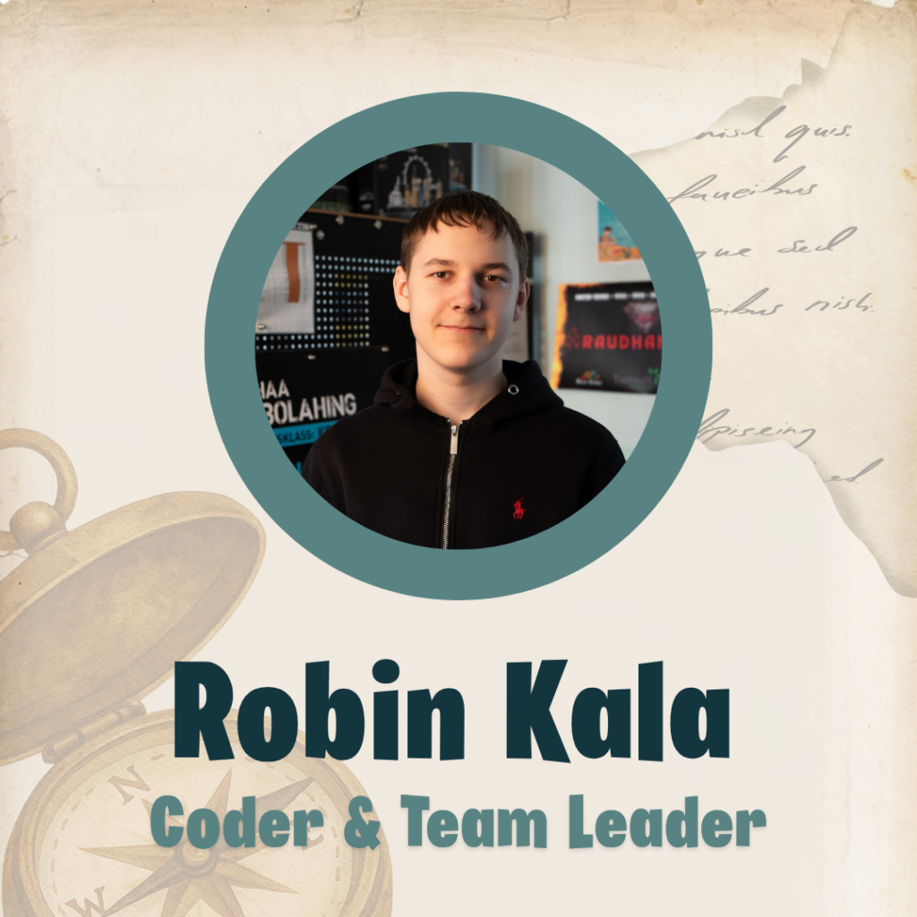 I study in the 7th grade at Võru Kreutzwald School and I am 14 years old. In my free time, I enjoy playing computer games and working with robotics. I have been involved in robotics for nine years and am now in my second year with the Nuti-Võlur team.